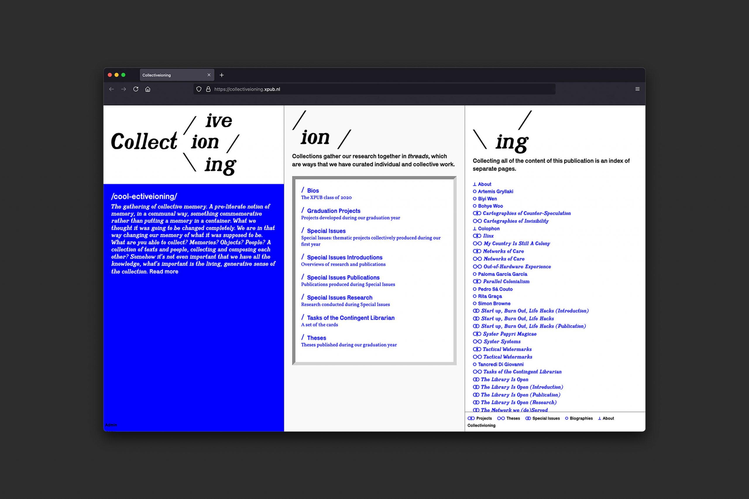 The School of X is part of the xCoAx conference on Computation, Communication, Aesthetics & X. This was a space where students, researchers, and artists are invited to develop self-directed research. My role was to design and develop the interface for publishing research results.
